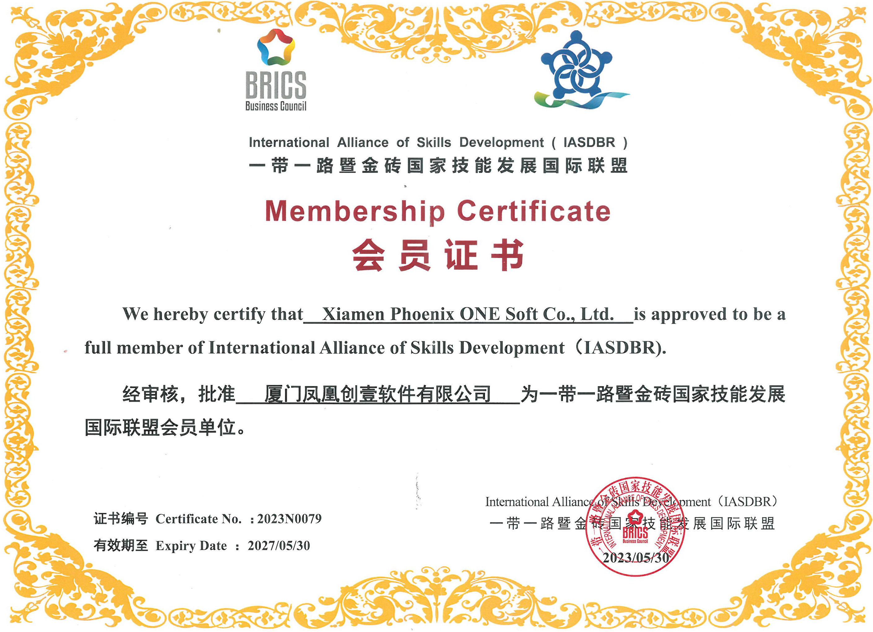 喜報(bào)!鳳凰創(chuàng)壹獲頒一帶一路暨金磚國(guó)家技能發(fā)展國(guó)際聯(lián)盟成員單位證書(shū)