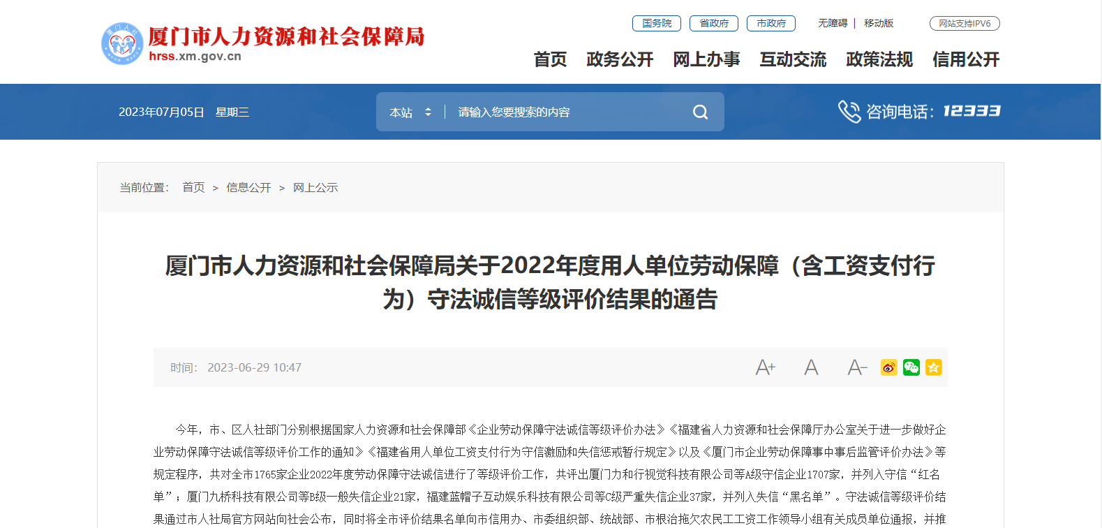 廈門鳳凰創(chuàng)壹軟件有限公司獲評(píng)A級(jí)守信企業(yè),并列入守信“紅名單”